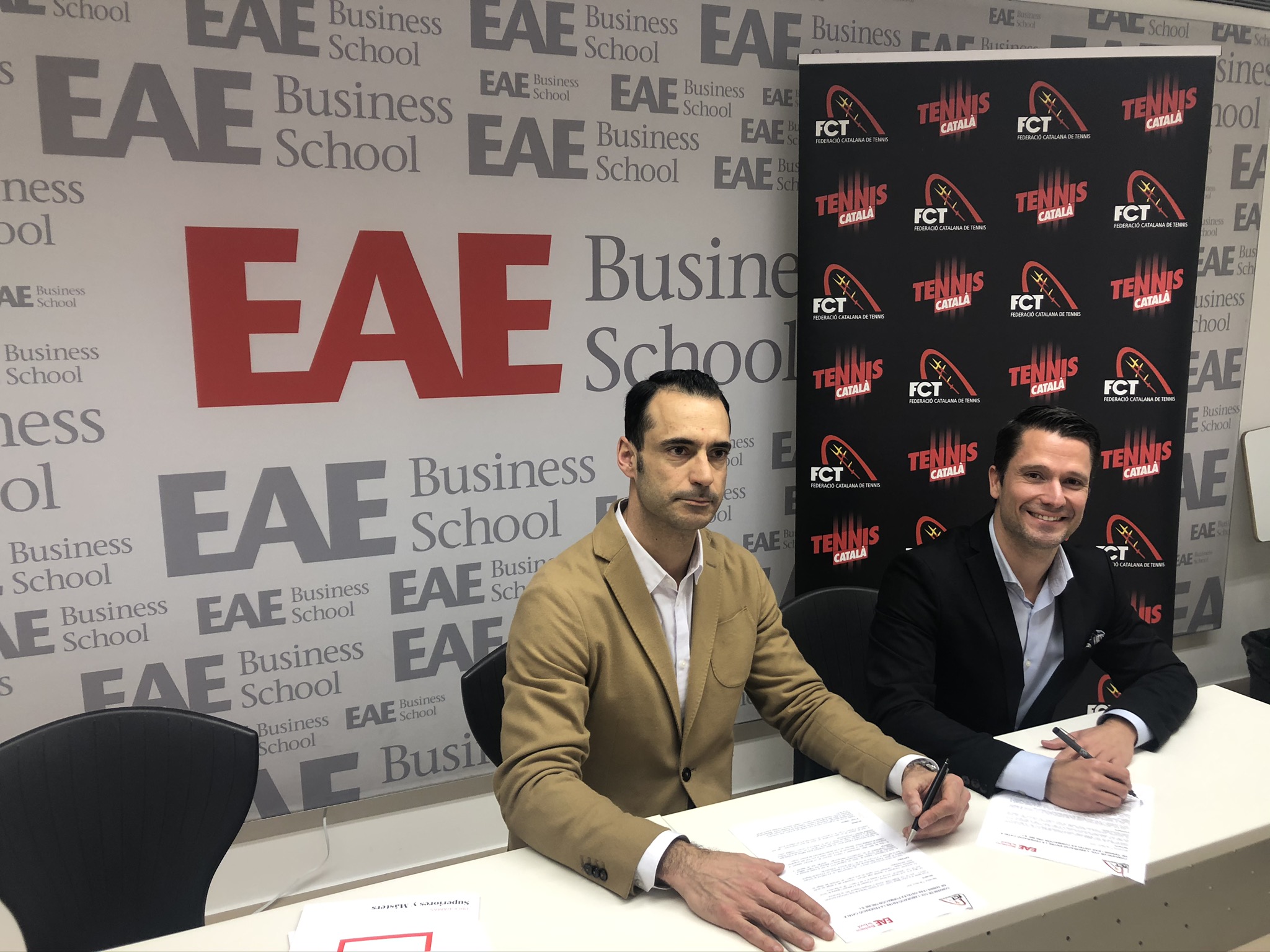 En l’acte de signatura del conveni, han participat el Sr. Jordi Tamayo, President de la Federació Catalana de Tennis així com Sr. Orlando Rivero i Javier Corral, Director de Relacions Públiques i Asesor Educatiu de EAE respectivament.
