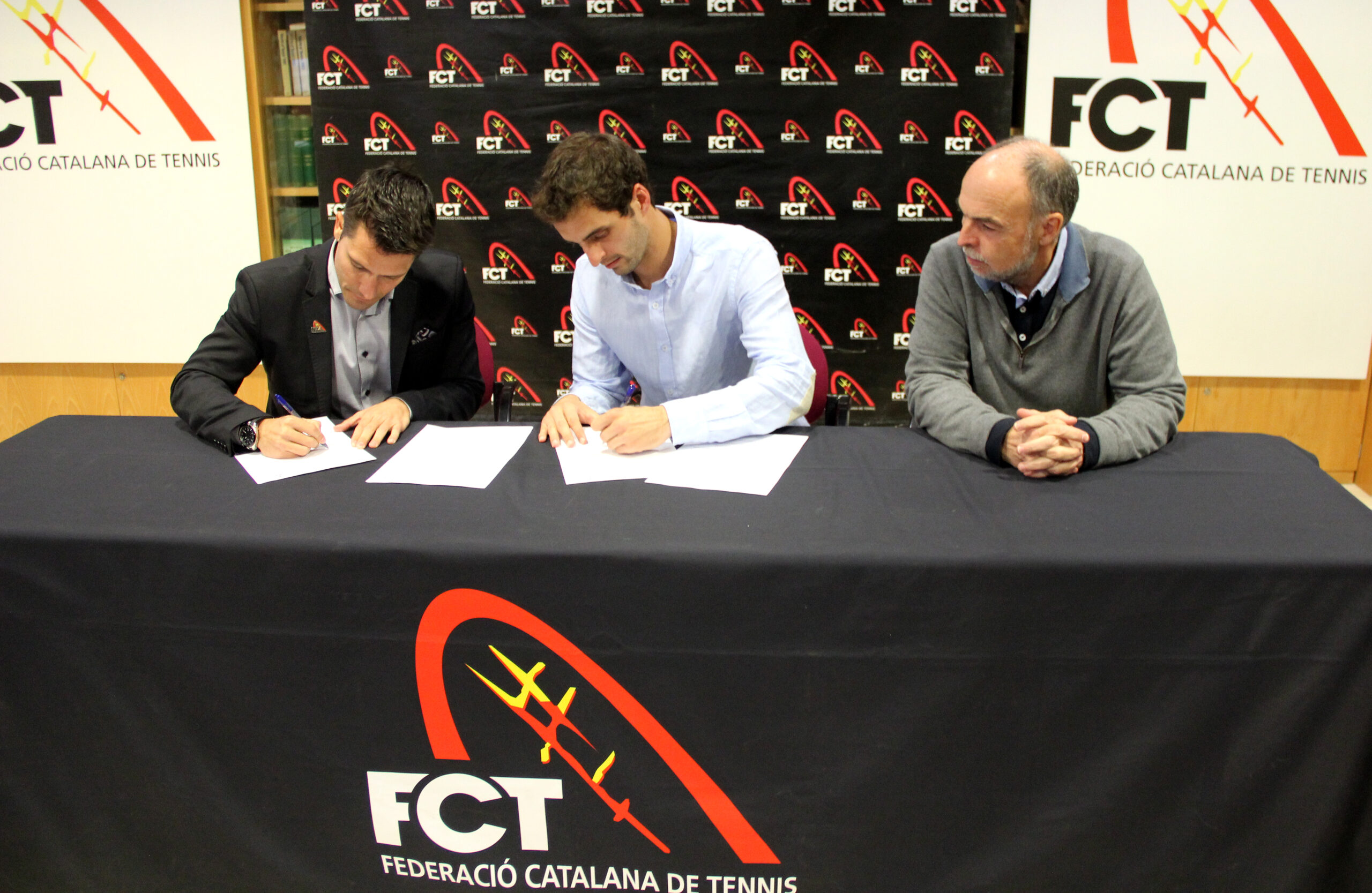 El Museu del Tennis Català, ha estat l’escenari escollit per a que el jugador català Albert Ramos, actual número 23 del ranking ATP i el President de la FCT Jordi Tamayo, acompanyat del VicePresident Econòmic Xavier Ponsatí, signin l’acord de Col·laboració que vincula Albert Ramos amb la Federació.