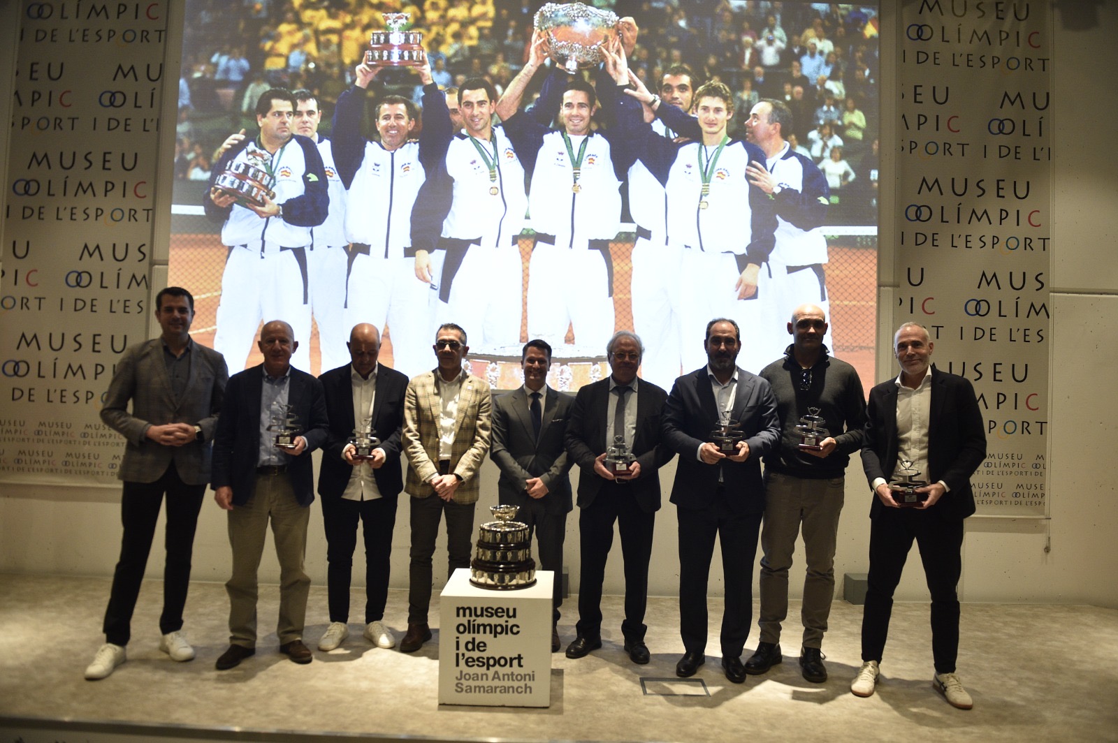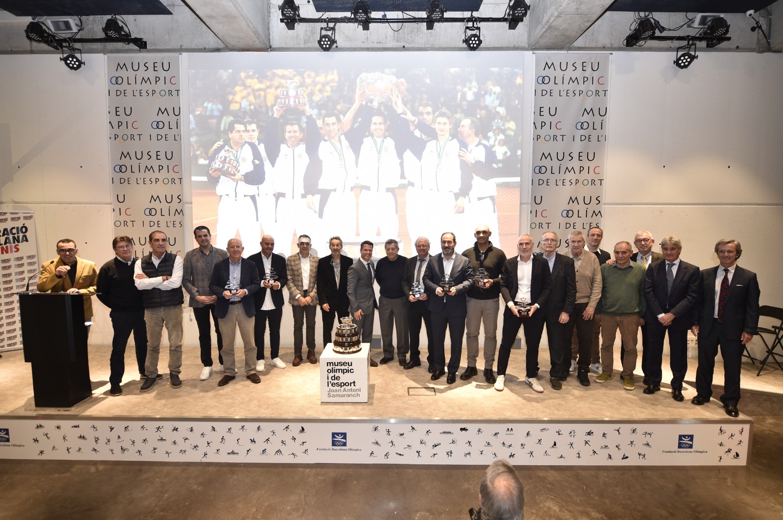 La Federació Catalana de Tennis ha commemorat, aquest dimecres 10 de desembre, el 25è aniversari de la consecució de la primera Copa Davis que va guanyar l’equip espanyol al Palau Sant Jordi. Va ser l’any 2000, en la final contra Austràlia davant 14.000 espectadors, i amb un equip integrat per Àlex Corretja, Albert Costa, Joan Balcells i Juan Carlos Ferrero. Els tres primers, i també dos dels capitans que van formar part d’aquell equip, Juan Avendaño i Jordi Vilaró -els altres dos van ser Javier Duarte i Josep Perlas– han estat presents en l’acte que s’ha celebrat aquest migdia al Museu Olímpic i de l’Esport Joan Antoni Samaranch.
